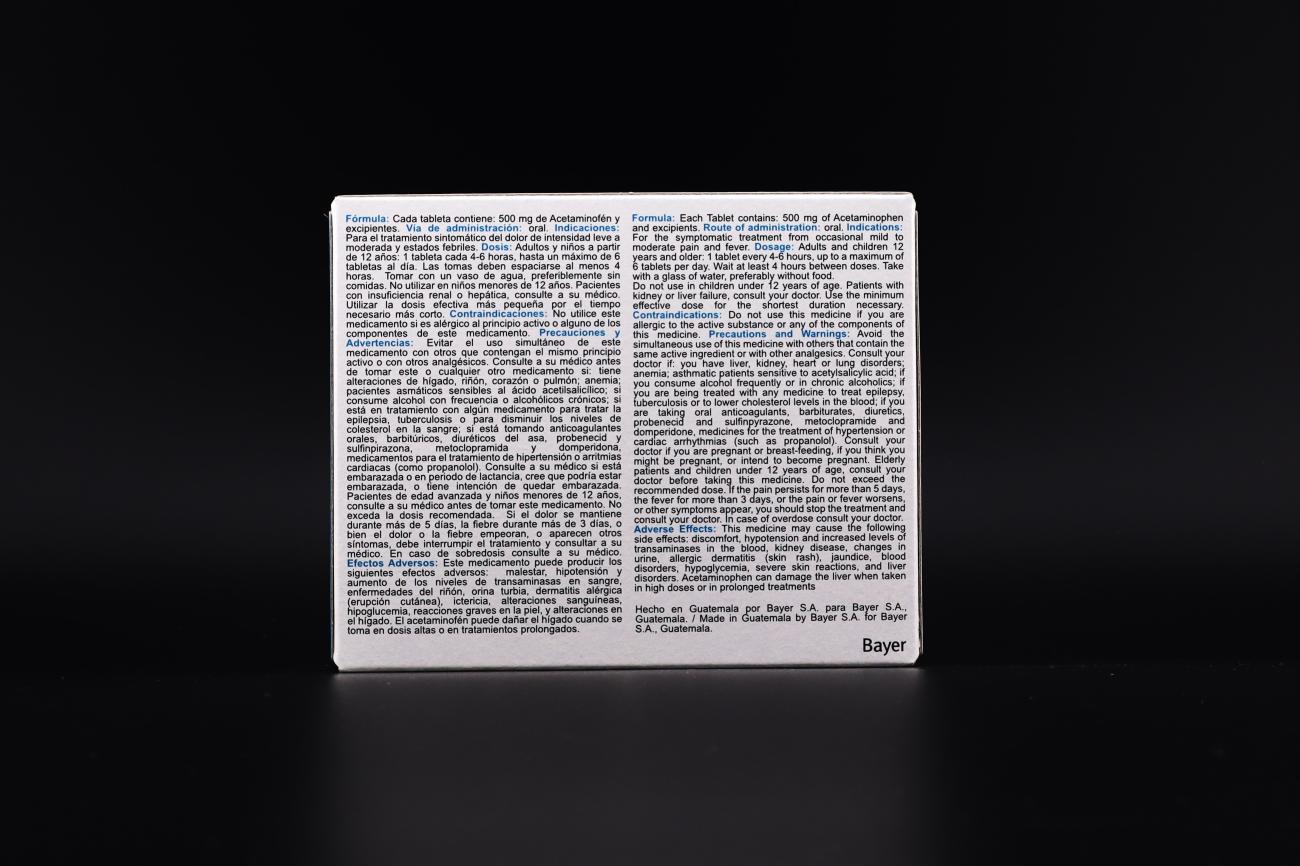 ACETAMINOFEN BAYER * TAB 500 MG X 20 UNIDAD(ES)
